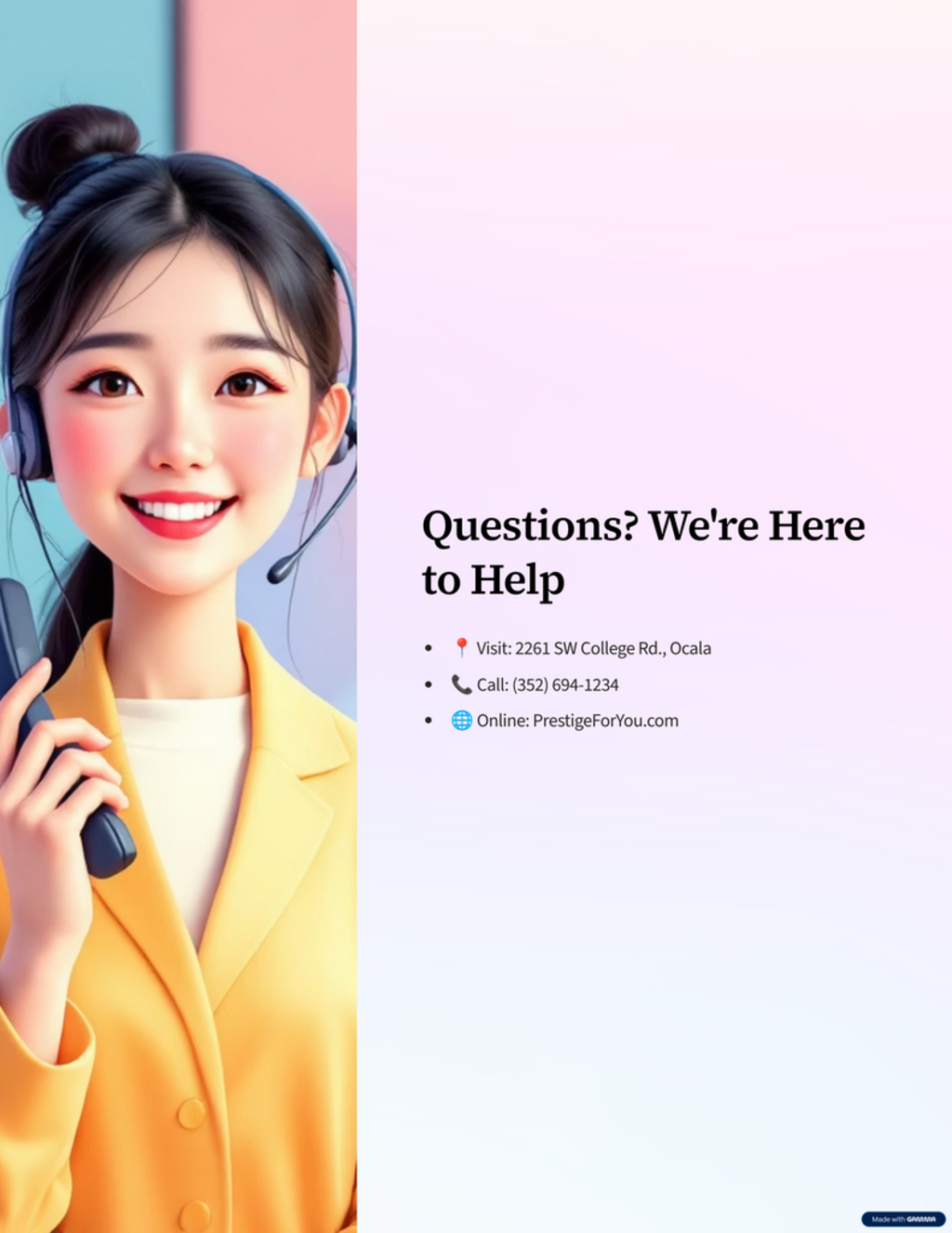 - We're here to help: 352-694-1234
